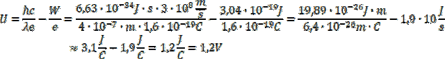 Obliczyliśmy napięcie hamowania w przypadku opisanym w punkcie b) zadania.