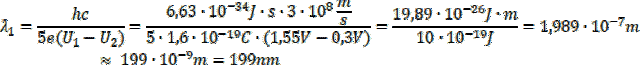 Aby obliczyć początkową długość fali, skorzystaj ze wzoru na bilans energetyczny zjawiska fotoelektrycznego oraz wzoru na energię fotonu, pamiętając, że przy napięciu hamującym energia kinetyczna elektronów dąży do zera. Następnie, wyznacz zależności dla 2 przypadków, aby wyprowadzić wzór
