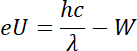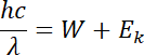 Wzór na bilans energetyczny zjawiska fotoelektrycznego: