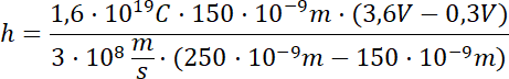 Podstawienie danych do wzorów pozwoliło na wyznaczenie wartości stałej Plancka