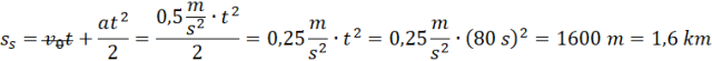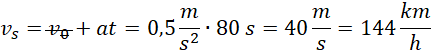 Na podstawie wzoru na drogę samochodu obliczamy drogę, jaką przebędą pojazdy, a następnie prędkość końcową samochodu korzystając ze wzoru na prędkość w ruchu jednostajnie przyspieszonym.