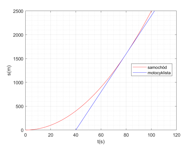 Wykorzystujemy wzory na drogę obu pojazdów zapisane w poprzednich podpunktach i wstawiamy odpowiednie dane liczbowe. Na ich podstawie rysujemy wykresy.