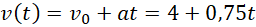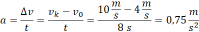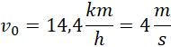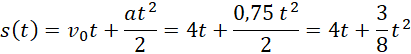 Wiedząc, że samochód poruszając się ruchem jednostajnie przyspieszonym zwiększa swoją szybkość od 14,4 km/h do 36 km/h w czasie 8 sekund, zapisz wzory na drogę i szybkość tego samochodu w zależności od czasu.