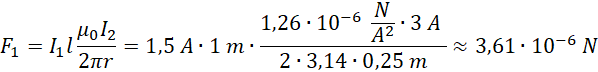 W tym zadaniu na podstawie podanych informacji musisz policzyć, jaka jest wartość siły w przypadku, kiedy przewodnik nr 2 działa na 1 m długości przewodnika nr 1.