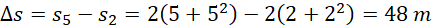 Korzystając ze wzoru podanego w treści zadania oblicz drogę przebytą przez ciało między początkiem trzeciej a końcem piątej sekundy ruchu oraz szybkość średnią ciała w tym czasie.
