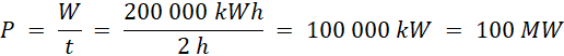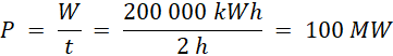 W czasie 2 godzin elektrownia produkuje 200 000 kWh energii.