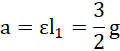 Z drugiej zasady dynamiki dla ruchu obrotowego bryły sztywnej, przyspieszenie kątowe to iloraz momentu siły i momentu bezwładności. Moment siły klapy to moment jej siły ciężkości, czyli iloczyn siły ciężkości (czyli masy i przyspieszenia ziemskiego) i połowy długości krawędzi l1. Z zebranych danych możesz wyznaczyć przyspieszenie kątowe, przyspieszenie liniowe otrzymasz, mnożąc otrzymany wynik przez promień, czyli długość krawędzi l1.