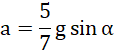 Zastanów się, jakie siły działają na kulę – są to siła ciężkości, siła reakcji podłoża oraz siła tarcia. Rozpisując siłę ciężkości na składowe, zauważ, że jedna z nich równoważy się z siłą reakcji podłoża. Wypadkowa pozostałych sił to z drugiej zasady dynamiki dla ruchu postępowego, iloczyn masy i przyspieszenia. Kula obraca się, więc z drugiej zasady dynamiki dla ruchu obrotowego, przyspieszenie kątowe jest równe ilorazowi wypadkowej momentu sił (tutaj jest to moment siły tarcia) i momentu bezwładności kuli (odczytaj z tabeli na końcu zbioru zadań). Wykorzystaj zależność między przyspieszeniem kątowym i przyspieszeniem liniowym, by wyznaczyć z zebranych równości przyspieszenie liniowe kuli. Zauważ, prędkość kuli zależy od przyspieszenia i czasu trwania ruchu, skoro przyspieszenie nie zależy od promienia bryły, to także prędkość od niego nie zależy.
