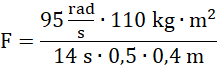 Odpowiedź: Aby zatrzymać koło w 14 sekund, potrzeba siły o wartości 3,7 kN.