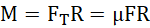 Z drugiej zasady dynamiki dla ruchu obrotowego bryły sztywnej, przyspieszenie kątowe jest równe ilorazowi wypadkowej momentów sił i momentu bezwładności bryły. Wyznacz z równości moment siły. Ponadto moment bezwładności koła w chwili hamowania jest równy iloczynowi siły tarcia i promienia koła, czyli iloczynowi siły, z jaką dociskano klocek, współczynnika tarcia i promienia koła. Przyrównaj do siebie te wyrażenia, wyznacz i wylicz wartość siły F.