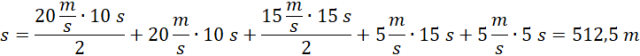 Drogę pokonaną przez samochód obliczamy jako pole powierzchni pod wykresem zależności prędkości od czasu.