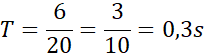 Szukany okres obliczamy ze wzoru, gdzie długość fali obliczyliśmy w podpunkcie 6.2.