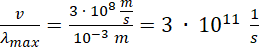 Z rysunku odczytujemy zakres długości podczerwieni wynoszący od 750 nm do 1 mm. Obliczając najmniejszą częstotliwość podczerwieni (fmin), wybieramy maksymalną długość tych fal (