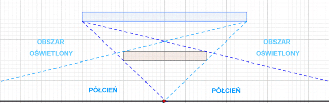 W momencie zbliżenia świetlówki o 1,5 kratki przeszkoda przestanie rzucać cień.