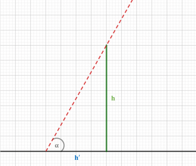 Zauważ, że utworzony trójkąt jest połową trójkąta równobocznego (trójkąt prostokątny o kątach 30°, 60° i 90°. Stąd wynika zależność między wysokością osoby (h) a rzucanym przez nią cieniem (h’):