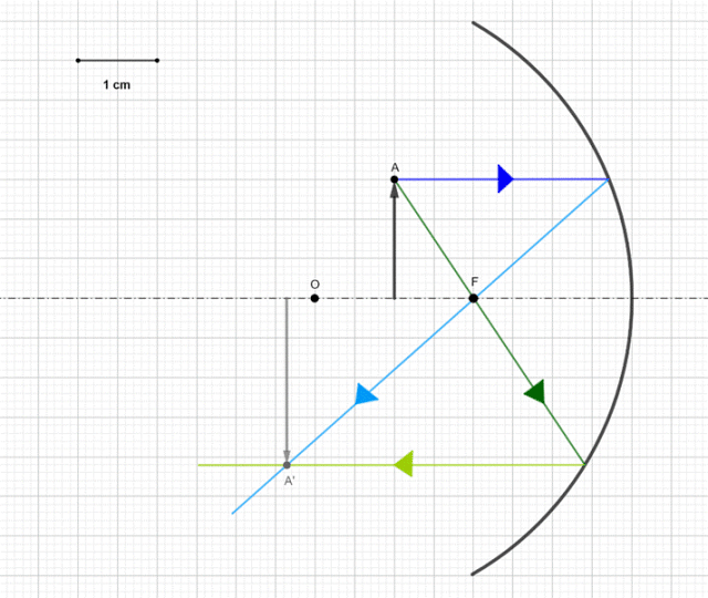 Skonstruuj obraz przedmiotu w zwierciadle wklęsłym o zadanych własnościach.