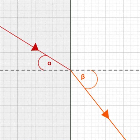 Zgodnie z prawem załamania światła, gdy podczas przejścia z pierwszego ośrodka do drugiego kąt załamania (β) jest większy od kąta padania (α), to pierwszy ośrodek jest gęstszy.