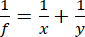 Odległość obrazu od soczewki obliczamy z równania soczewek, które mówi, że odwrotność ogniskowej (f) jest równa sumie odwrotności odległości przedmiotu od obrazu (x) oraz obrazu (y).