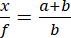 Korzystając z podobieństwa tych trójkątów, zapisz proporcję między ich przyprostokątnymi, w której wystąpią wielkości a, b, x, f.