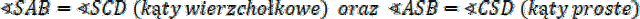 Zastanów się, jaki trójkąt jest podobny do trójkąta ABS oraz zapisz proporcję między przyprostokątnymi tych trójkątów, w której wystąpią wielkości a, b, x, y.