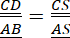 Zgodnie z podobieństwem trójkątów stosunki długości odpowiadających przyprostokątnych są sobie równe oraz jednocześnie równe skali podobieństwa.