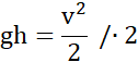 Energia potencjalna na górze jest równa energii kinetycznej na dole: