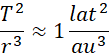 Wykorzystujemy III prawo Keplera i stałą prawdziwą dla Układu Słonecznego. Przekształcamy wzór i podstawiamy dane liczbowe.