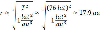 Oblicz w przybliżeniu średni promień orbity, po której porusza się kometa Halleya.
