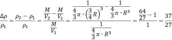 Oblicz i wyraź w procentach względną zmianę gęstości tej gwiazdy, wiedząc, że jej promień zmniejszył się o 25%, a masa pozostała niezmienna.
