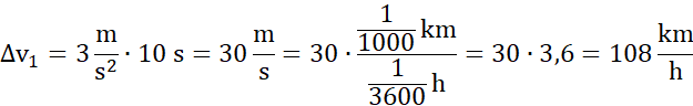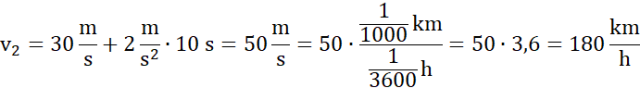 Ustal prędkość, jaką uzyskał samochód po pierwszych dziesięciu i dwudziestu sekundach ruchu, jeżeli w t = 0 s samochód miał prędkość
