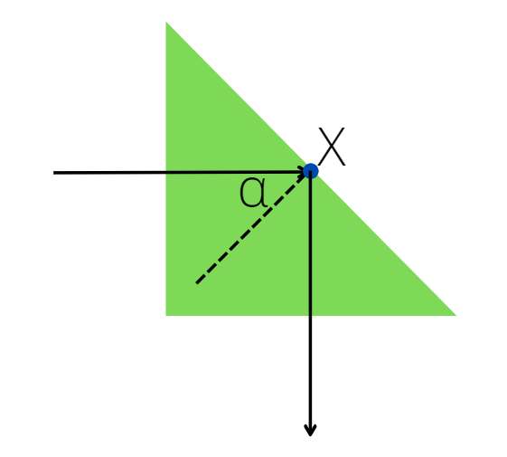 Promień w punkcie X odbije się w całości od prędkości granicznej. Narysuj jego dalszy bieg.