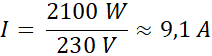 W tym zadaniu oblicz natężenie prądu płynącego przez spiralę grzejną czajnika o mocy 2100 W zasilanego z sieci domowej 230 V.