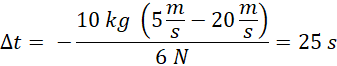 Oblicz czas trwania siły hamującej o wartości 6 N działającej na ciało o masie 10 kg w taki sposób, aby jego prędkość zmalała z do tej wartości.