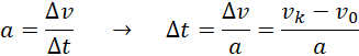 Na początku wyprowadź wzór na opóźnienie, korzystając z II zasady dynamiki Newtona. Następnie, na podstawie wzoru na opóźnienie w ruchu jednostajnie opóźnionym wyprowadź wzór na przyrost czasu. Na końcu połącz ze sobą oba wzory.