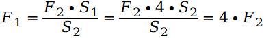 W tym zadaniu musisz określić, ile razy zwiększono wartość siły, jeśli mały tłok ma 4 razy większe pole powierzchni niż duży.