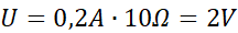 Zacznijmy od żarówki o oporze 10 𝛺. Ze schematu odczytujemy, że płynie przez nią prąd o natężeniu 0,2 A, więc woltomierz podłączony równolegle do tej żarówki wskazuje napięcie U = 0,2 A ∙ 10 𝛺 = 2 V.