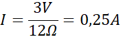 Napięcie między końcówkami żarówki o oporze 12 𝛺 wynosi 3 V, czyli przez tę żarówkę płynie prąd o natężeniu I = 0,25 A.