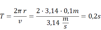 Przekształć wzór na prędkość liniową jako ilorazu przebytej drogi (obwód okręgu) i czasu (okresu). Oblicz okres. Podziel następnie czas podany w treści przez czas jednego obrotu (okres).