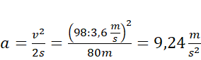 Oblicz opóźnienie, jakie ma samochód podczas hamowania. Wykorzystaj do tego wzory ruchu jednostajnie zmiennego. Następnie oblicz wartość siły bezwładności, która jest co do wartości równa sile, z jaką hamuje samochód.