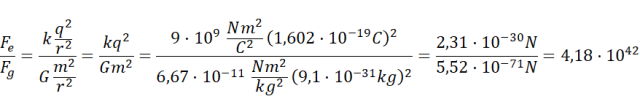 Oblicz stosunek sił. Podziel przez siebie wzory na siłę elektryczną i na siłę grawitacji (centralną). Odległość nie ma znaczenia dla tego stosunku.