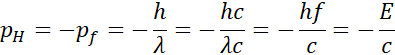 Minus informuje o tym, iż zwroty pędów są przeciwne. Korzystając z hipotezy de Broglie’a: