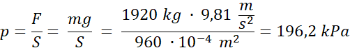 Korzystamy ze wzoru na ciśnienie, siła nacisku jest równa sile ciężkości samochodu. Przeliczamy jednostki.