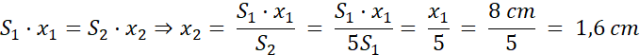Korzystamy ze wzoru na ciśnienie i zasady zachowania energii – prace wykonaną przez tłoki muszą być sobie równe. Następnie używamy prawa Pascala – ciśnienie jest takie samo w całej objętości cieczy. Przekształcamy wzór i przedstawiamy powierzchnię dużego tłoka w zależności od powierzchni małego tłoka. Liczba cykli jest ilorazem wysokości i przesunięcia w jednym cyklu.