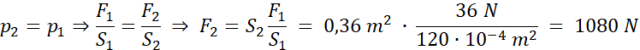 Ze wzoru na ciśnienie i prawa Pascala obliczamy siłę nacisku na duży tłok: