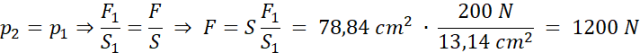 Korzystamy ze wzoru na ciśnienie i prawa Pascala – ciśnienie jest takie samo w całej objętości cieczy.