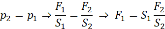 Ze wzoru na ciśnienie i prawa Pascala obliczamy siłę, jaka powinna działać na mały tłok: