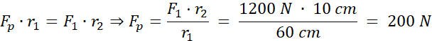 Korzystamy równości momentów sił – iloczyny siły, odległości od punktu odniesienia oraz sinusa kąta pomiędzy nimi (u nas sin(90o) = 1) muszą być równe dla obu sił.\