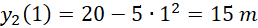 Wysokość, na której miną się ciała obliczamy, wstawiając wartość czasu, w którym to nastąpi do jednej z zależności położenia od czasu.