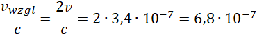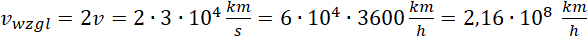Dwa obiekty poruszają się w przeciwne strony z taką samą prędkością. To oznacza, że ich prędkość względna jest 2 razy większa od prędkości jednego obiektu.