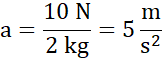 Oblicz przyspieszenie, które uzyskuje ciało o masie 2 kg pod wpływem siły 10 N.